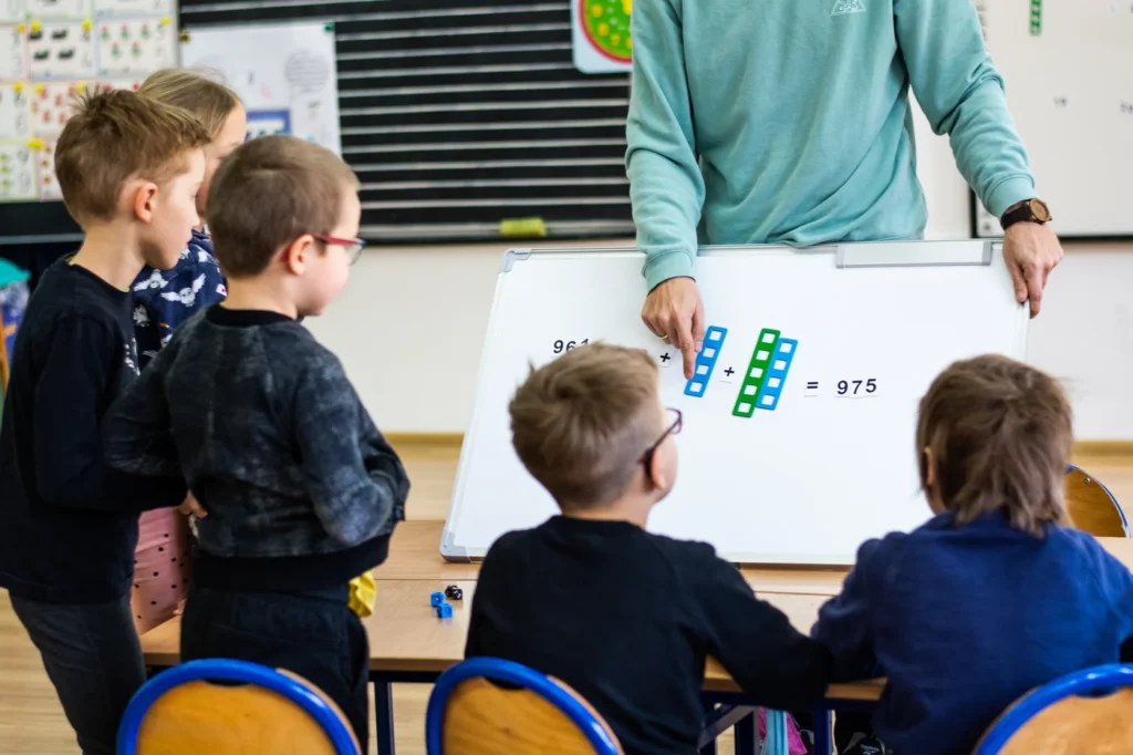 Nasze zajęcia odbywają się w przedszkolach i szkołach podstawowych, a także w formie zorganizowanych zajęć dodatkowych i korepetycji. Pracujemy według autorskiej metody Nemezjusza Cywińskiego – sprawdzonego podejścia, które rozwija logiczne myślenie i wrażliwość matematyczną. Zamiast schematów – rozumienie. Zamiast presji – ciekawość i zabawa. Dzieci rozwiązują problemy, nie zdając sobie sprawy, że właśnie uczą się liczyć. Dlaczego? Bo dobrze się bawią – a to właśnie wtedy uczymy się najszybciej.