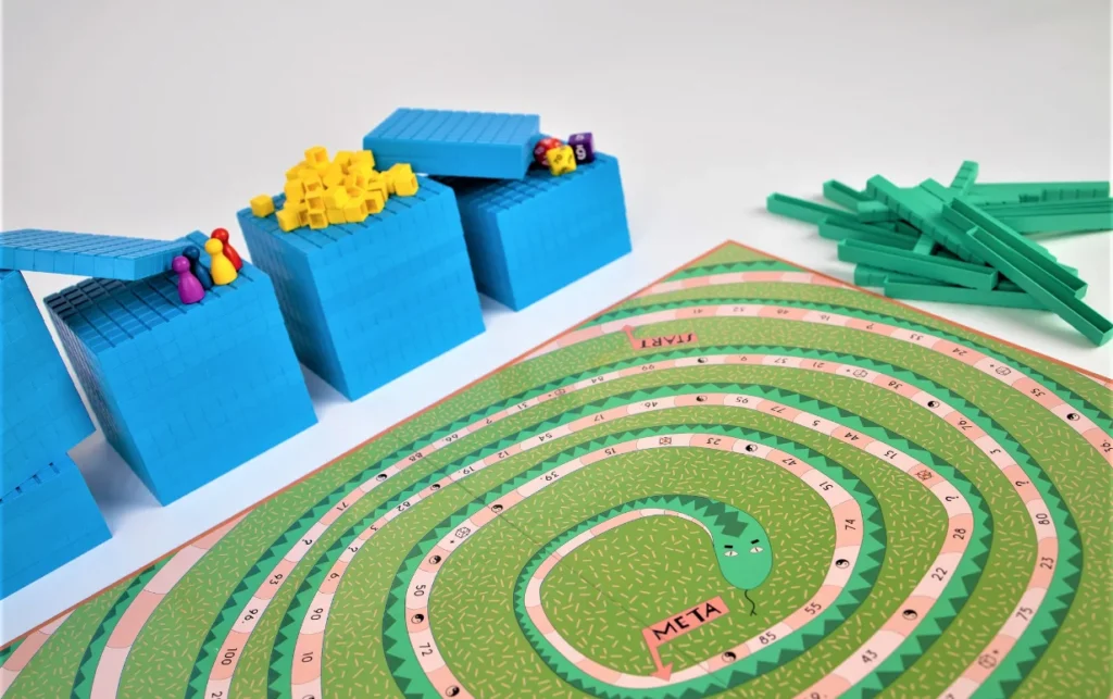 Gra matematyczna dla dzieci rozpoczynających naukę działań na dużych liczbach. Wraz z dołączonymi klockami w przystępny sposób przedstawia prawidłowości systemu dziesiętnego. Już po pierwszej rozgrywce dzieci są nie tylko w stanie rozpoznać liczby do 100, ale również określić z ilu dziesiątek i jedności składa się dana liczba.