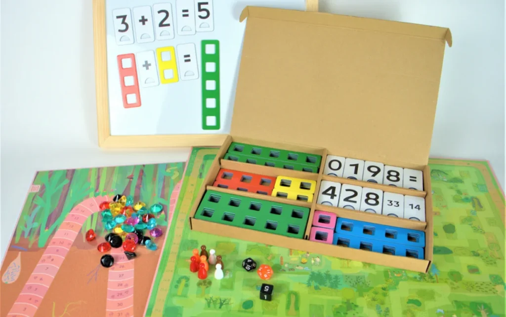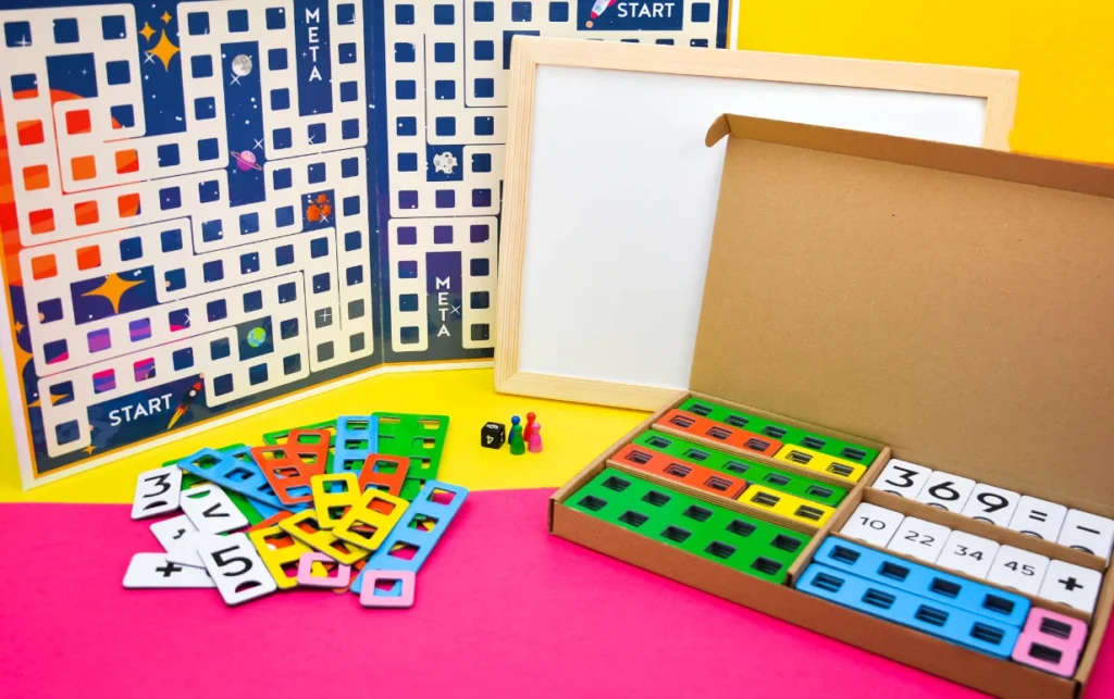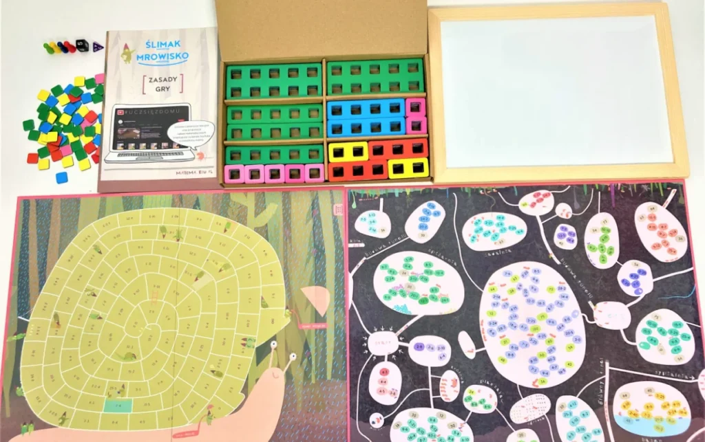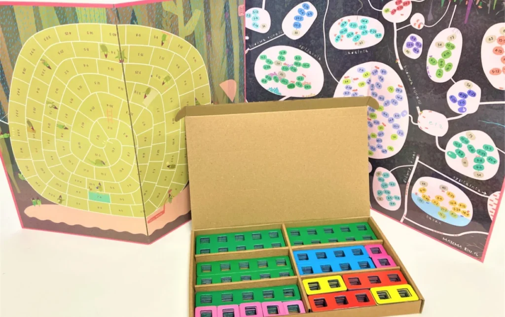 Wiedząc, jakie problemy napotykają dzieci w nauce liczenia, opracowaliśmy własną metodę nauczania matematyki. Korzystamy z autorskich pomocy naukowych (np. klocki Nemi do nauki tabliczki mnożenia, karty magnetyczne z liczbami) oraz matematycznych gier planszowych (widocznych poniżej). Wymienione pomoce okazały się nieocenione w nauce dodawania, odejmowania, czy nauce tabliczki mnożenia. Dzięki nim dzieci mają świat matematyki na wyciągnięcie ręki.